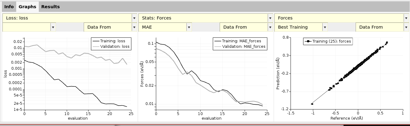 This panel lets you set a target value for the MAE on the forces. This means that if the MAE is smaller than this threshold for both the training and validation, the training stops. This can help to